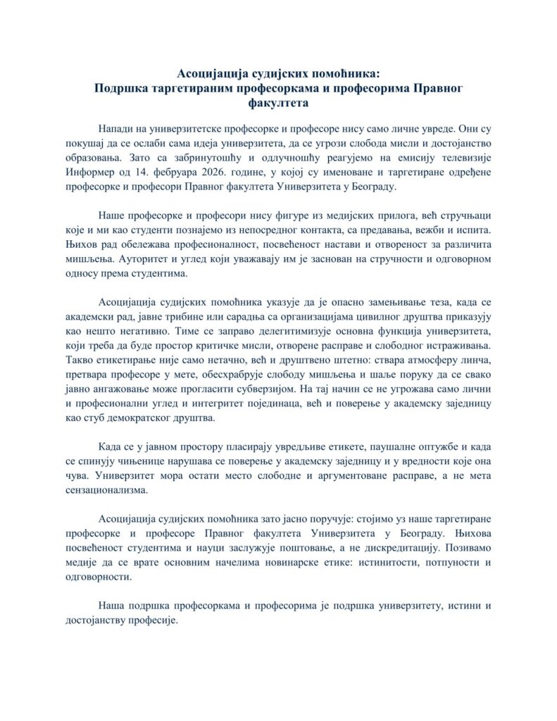 Подршка таргетираним професоркама и професорима Правног факултета Универзитета у БеоградуASPFebruary 17, 2026Stav Tags# ASP# pravnifakultet# profesori